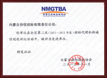 2011-2012年度招標(biāo)代理機(jī)構(gòu)誠(chéng)信單位