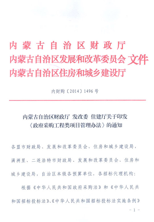 內(nèi)財(cái)購(gòu)[2014]1496號(hào)《政府采購(gòu)工程類(lèi)項(xiàng)目管理辦法》